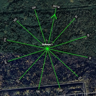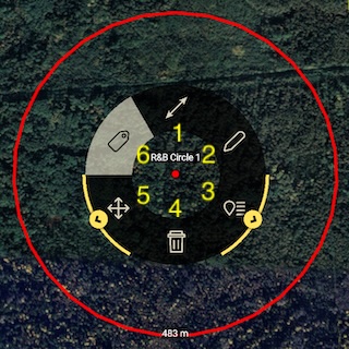 Выберите иконку Показать детали (3) в круговом меню, чтобы изменить местоположение центра круга, радиус, единицу измерения, количество колец и примечания. После внесения корректировок круги будут перерисованы в соответствии с указаниями. Круг R&B можно отправить другим пользователям.