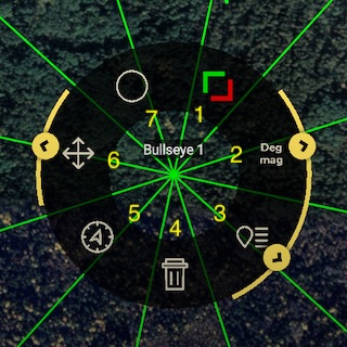 Перетащите палец внутри увеличенной области, чтобы точно расположить конец линии R&B, затем выберите CONFIRM, чтобы принять новое положение, или CANCEL, чтобы отменить его. Чтобы удалить линию пеленга, выберите иконку Удалить (3) в круговом меню, и линия будет удалена.